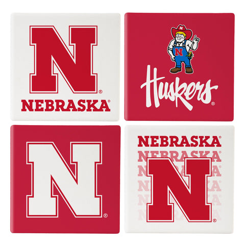 Nebraska Cornhuskers Coaster Set 4 Piece with Wood Caddy