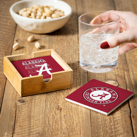 Alabama Crimson Tide Coaster Set 4 Piece with Wood Caddy
